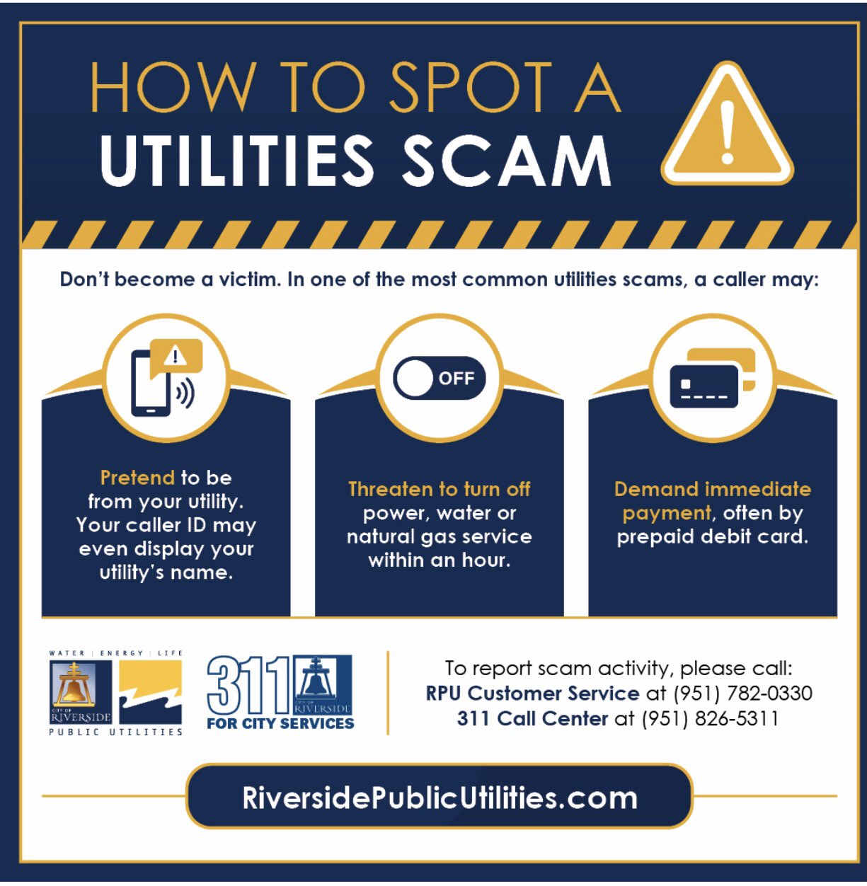 Riverside Public Utilities Rpu On Twitter We Are Aware Of A Scam Targeting Rpunews Customers Some Have Rec D Calls Saying Their Power May Be Shut Off Within 30 Min Do Not Follow
